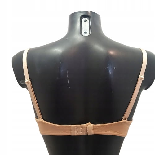 Biustonosz typu push up, który nawet z drobnego biustu wyczaruje piękny dekolt. Miseczka gładka w kolorze beżu. Idealny do głębszych dekoltów. Biustonosz niewidoczny nawet pod obcisłą odzieżą. Boczki z dodatkowym wzmacniającym panelem. Wąskie ramiączka z możliwością regulacji i odpinania. Zapinany na dwie haftki w trzech rzędach.
