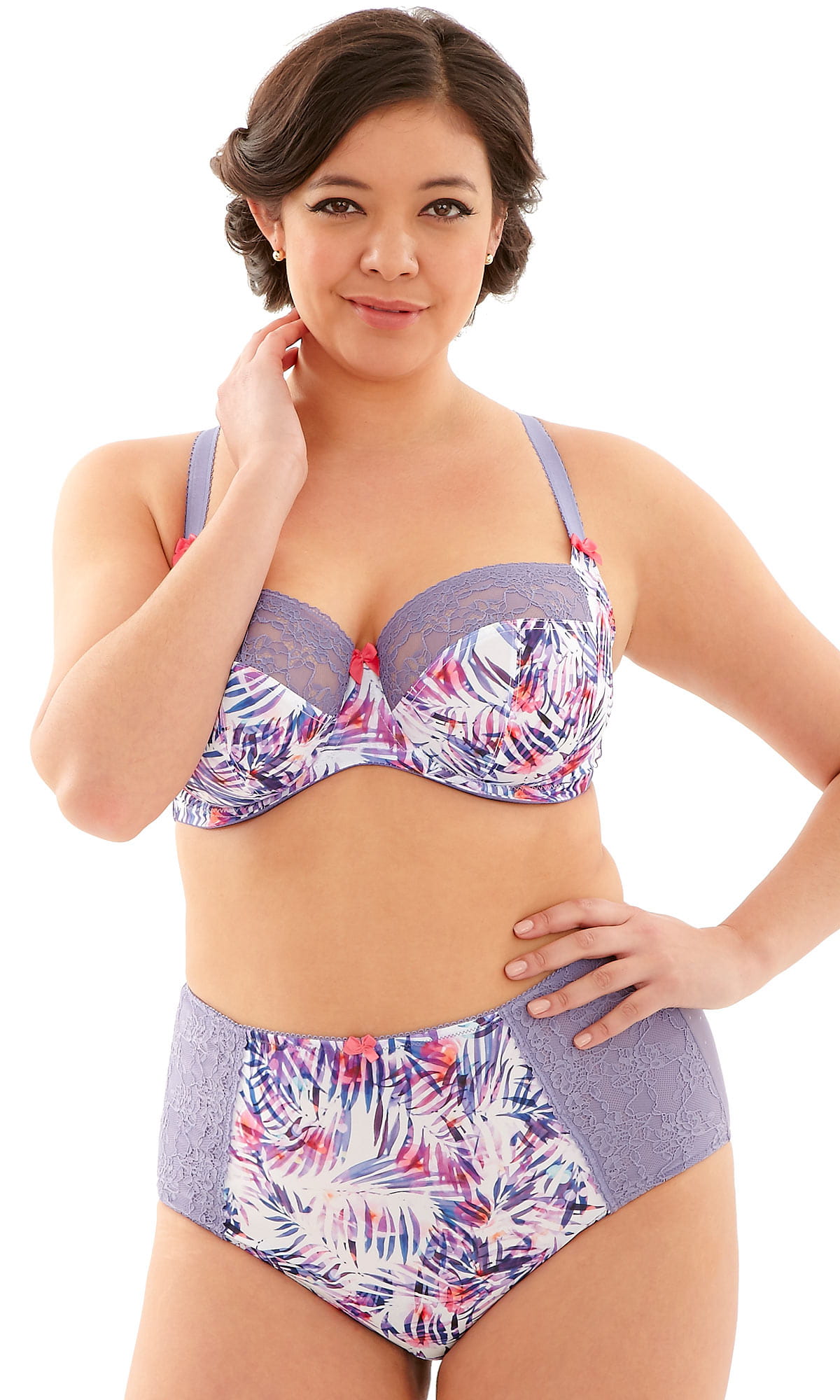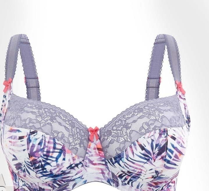 Biustonosz Scuptresse by Panache Palm Print Górna część miseczki wykonana z elastycznej koronki zapewniającej gładkie wykończenie i dopasowanie dla większych biustów. Dolna część wzmocniona dodatkową warstwą materiału dla lepszego podtrzymania i idealnego kształtu. W pełni regulowane, podszyte pluszem ramiączka oraz miękko wykończona okolica haftek gwarantują wygodę i komfort noszenia. Konstrukcja biustonosza zapewnia wspaniały kształt biustu i znakomite podtrzymanie.