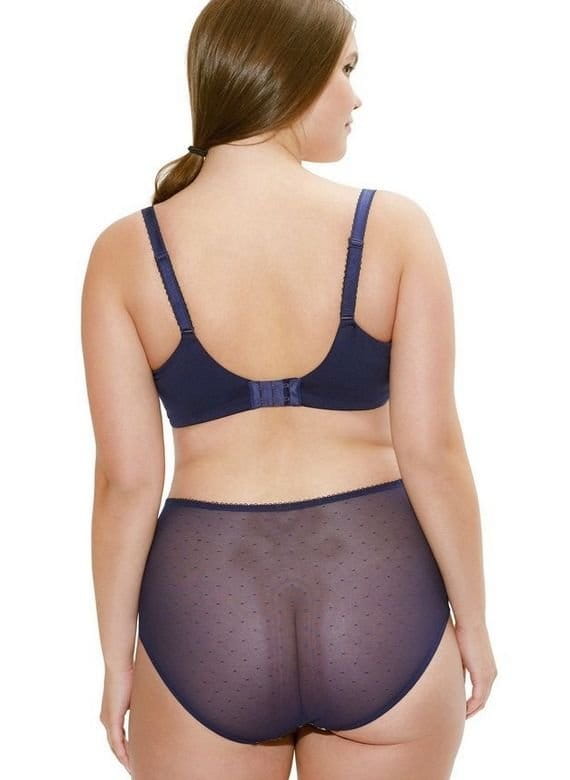Biustonosz Scuptresse Chii Chi Full Cup Navy miękki biustonosz z fiszbinami przeznaczony dla Pań o pełniejszych kształtach. Flora W górnej części miseczek wykorzystana została elastyczna koronka, która ładnie dopasowuje się do piersi zapewniając gładkie wykończenie, dolna zaś część miseczek wykonana z mocnego, laminowanego materiału, który zapewnia odpowiednie uniesienie i podtrzymanie biustu. Boczny panel zbiera biust do środka. Biustonosz posiada odpowiednio szeroki pas obwodu, wygodne, w pełni regulowane ramiączka oraz miękko wykończoną okolicę haftek dla zwiększenia wygody i komfortu noszenia. Biustonosz w kolorze granatowym ozdobiony pięknym,