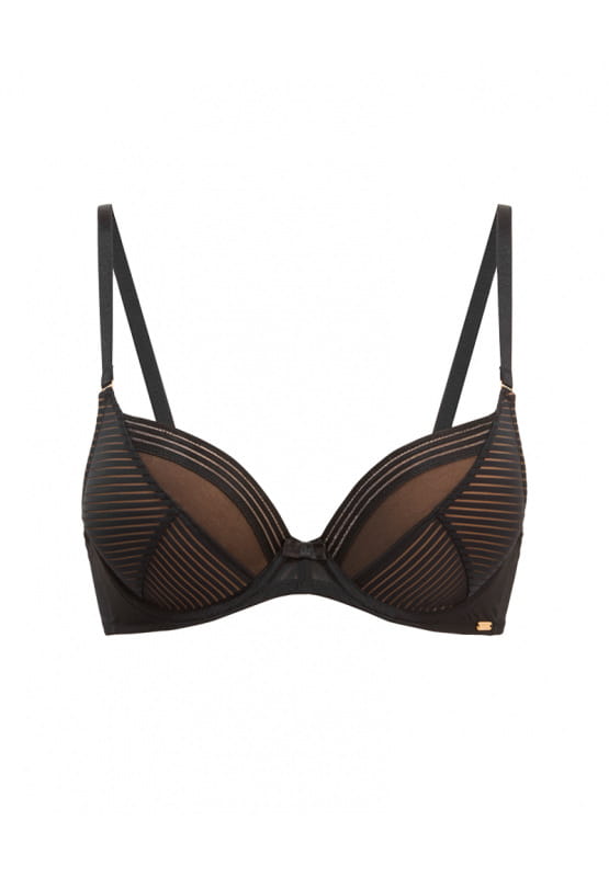 Biustonosz Gossard Sheer Stripe to linia biustonoszy w czerni eleganckich i wygodnych, dzięki połączeniu gładkiej mikrofibry i delikatnej siateczki.